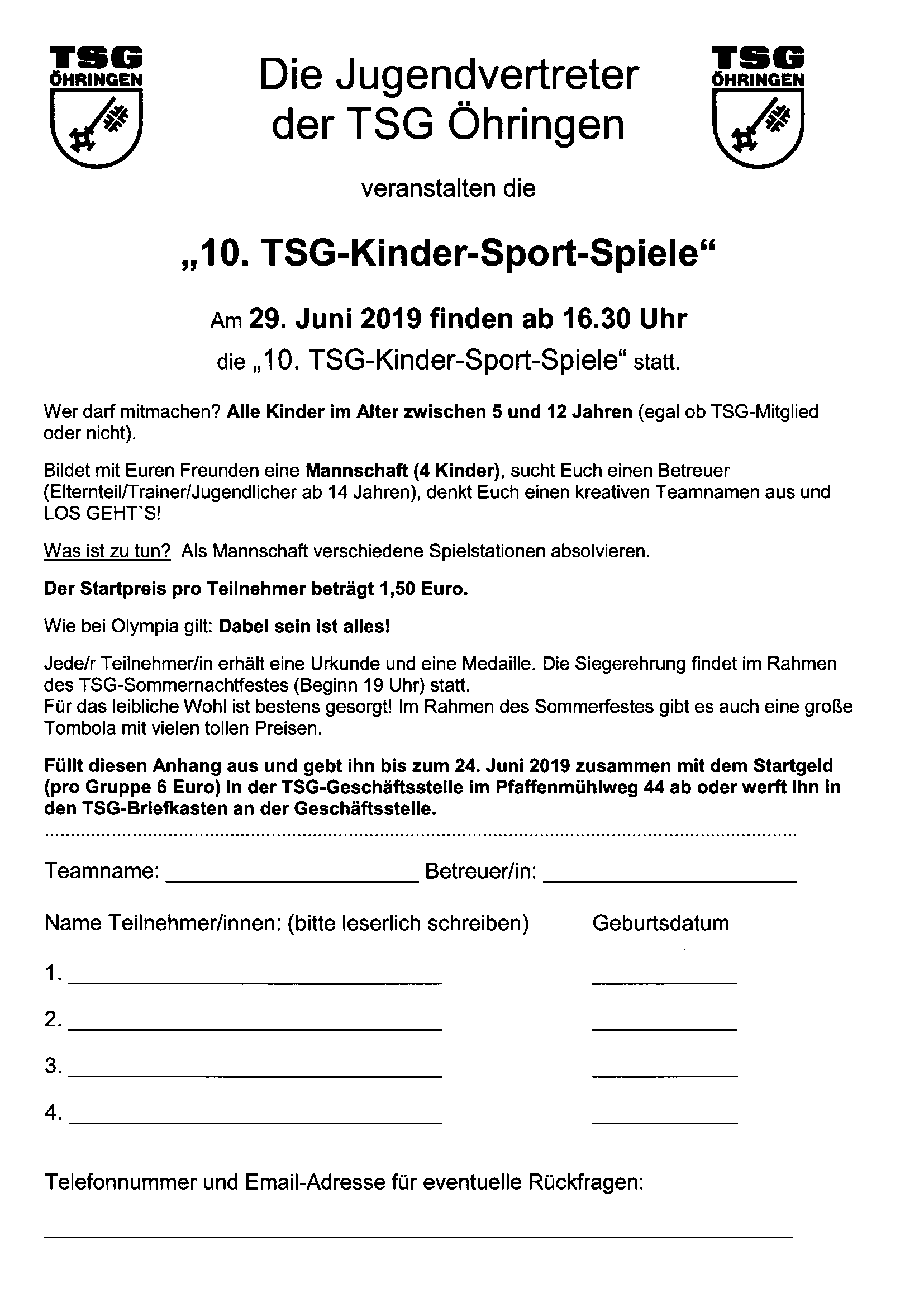 Anmeldeformuar 10. Kinder-Sport-Spiele