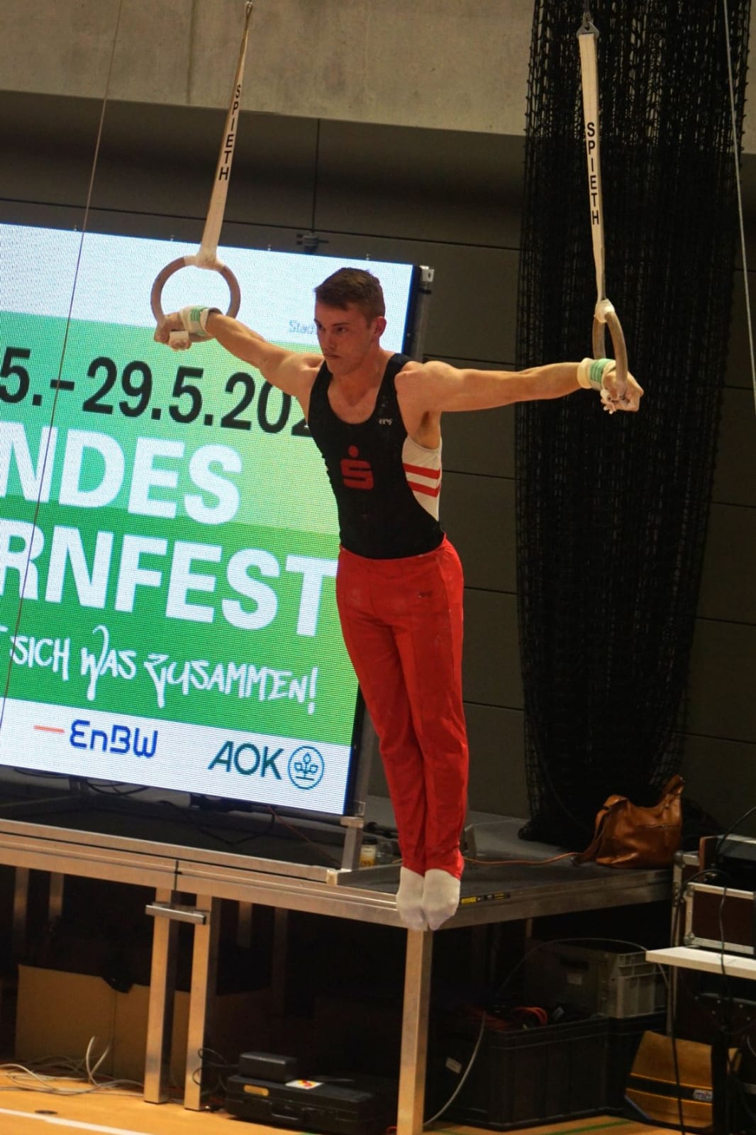 Vier tolle Tage erlebten die Öhringer Turnerinnen und Turner beim Landesturnfest in Lahr im Schwarzwald. Da die baden-württembergischen Meisterschaften der Jungs bereits am Donnerstag stattfanden, starteten die ersten drei Autos, vollbeladen mit Schlafsack, Isomatte, Wettkampfkleidung und sonstiger Ausrüstung um 8 Uhr in Öhringen. In Kuhbach, einem Teilort von Lahr, angekommen, wurde zunächst die Schule bezogen, bevor es dann für Ron Philippiak und Jonas Albrecht ernst wurde. Nach einem konzentrierten Wettkampf ohne größere Patzer belegte Ron am Ende einen tollen 7. Platz bei den Baden-Württembergischen Meisterschaften der Altersklasse 17/18, Jonas wurde guter 10. Durch seine sauberen Sprünge über den Sprungtisch sicherte sich Jonas einen Platz im Sprungfinale, das er mit zwei tollen Sprüngen sogar gewinnen konnte und den Titel des Baden-Wüttembergischen Meisters am Sprung nach Markelsheim holte.