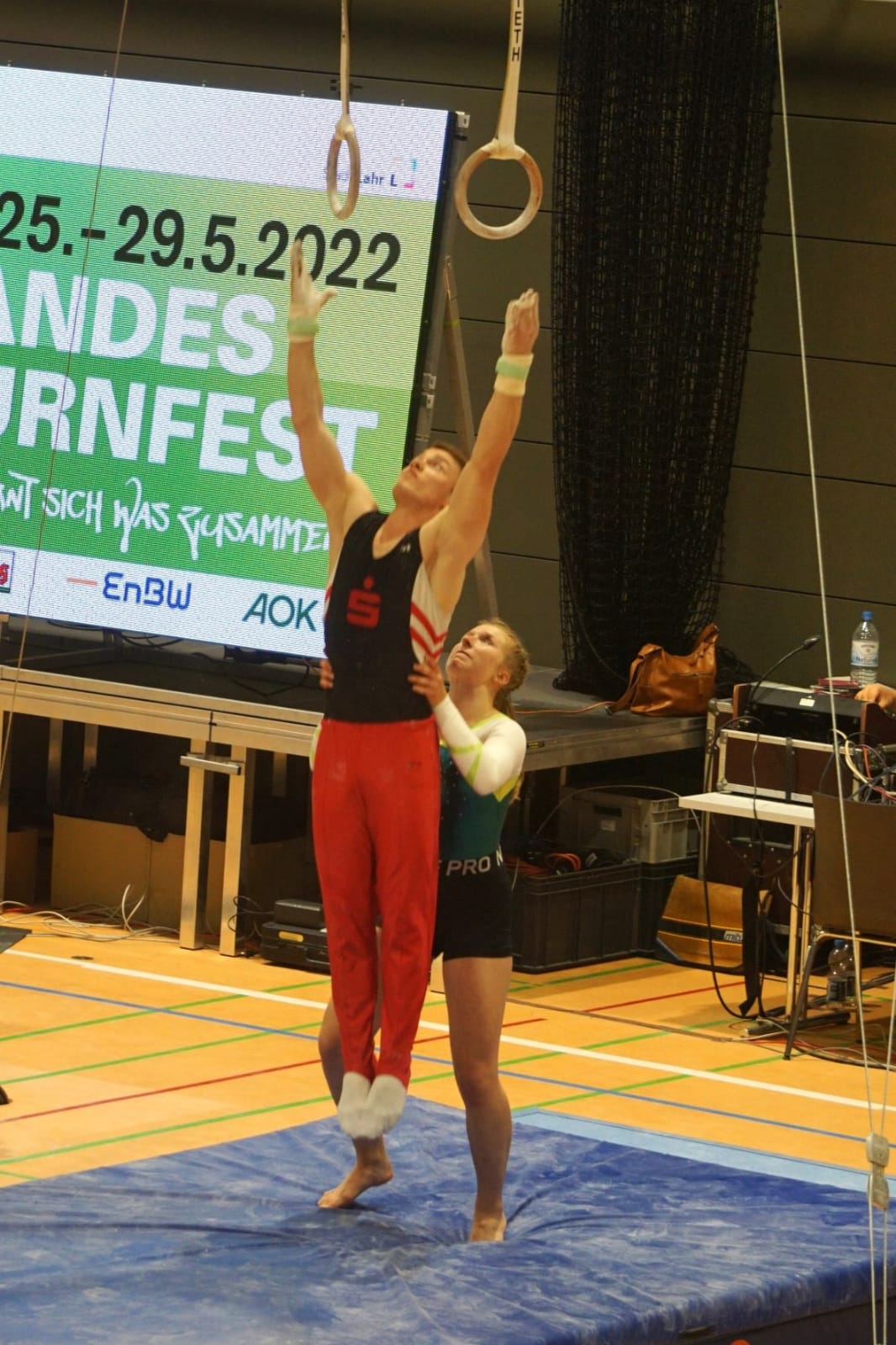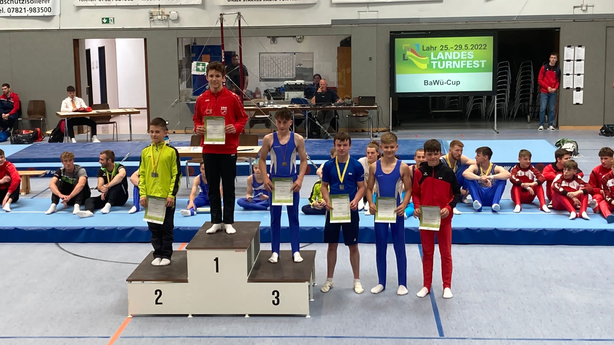 Nach der ersten kurzen Nacht auf der Isomatte im Klassenzimmer der Grundschule Kuhbach hieß es für die jüngeren Turnerinnen und Turner den ersten Bus zu erwischen, um pünktlich am jeweiligen Wettkampfort anzukommen. Marleen Müller-Riederer und Sophie Wunder starteten im Baden-Württemberg-Cup LK2 in der Altersklasse 12/13, Moritz Federolf AK 14/15 und Julian Pfleger in der AK 16/17. Marleen wurde sehr gute 7., Sophie belegte den 9. Platz. Moritz turnte einen nahezu fehlerfreien Wettkampf und verwies die Konkurrenz deutlich auf die Plätze. Der Titel in dieser Alterklasse bedeutet für Moritz, dass er zum Deutschlandpokal nach Waging fahren darf. Julian wurde, durch zwei größere Patzer ausgebremst, noch guter 4. und auch diese Platzierung bedeutet für ihn die Teilnahme am Deutschlandpokal.